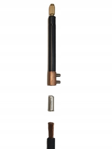 Uchwyt wykonany z miedzi a mocowanie zaciskowe do elektrody z mosiądzu, elektrody 3 mm miedziane.