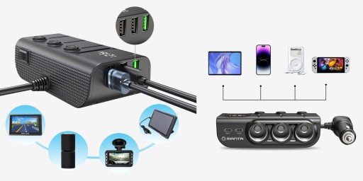 Rozdzielacz gniazda zapalniczki Manta Cari PRO to wszechstronne urządzenie, które łączy praktyczność, styl i wydajność w jednym. Dzięki temu rozdzielaczowi, możesz podzielić jedno gniazdo zapalniczki na trzy niezależne gniazda, z osobnymi włącznikami i efektownym podświetleniem. Jest to przydatne zwłaszcza gdy potrzebujesz podłączyć więcej niż jedno urządzenie w czasie podróży, na przykład ładowarkę do telefonu komórkowego i nawigację GPS jednocześnie.