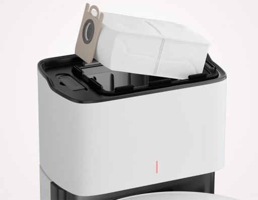 Stacja ładująca służy nie tylko do ładowania robota, ale także do automatycznego opróżniania pojemnika na śmieci do worka o dużej pojemności wewnątrz stacji. W ten sposób nie dojdzie do kontaktu z brudem i alergenami. Ponadto zasysanie kurzu do worka jest bardzo szybkie, wystarczy 15 sekund i odkurzacz jest gotowy do pracy. Worek ma pojemność 2,5 litra i wystarcza na co najmniej 2 miesiące przed koniecznością jego wymiany.