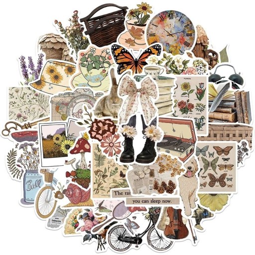 RETRO NAKLEJKI VINTAGE GIRL KWIATY STICKERBOMB MIX EXTRA WLEPKI 50 szt