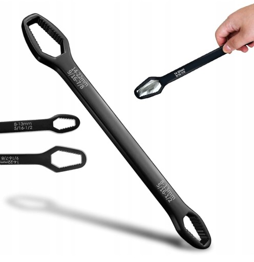 Uniwersalny klucz płaski to produkt, który idealnie sprawdzi się w Twoim domu i garażu. Dzięki wyjątkowemu designowi zastąpi on ponad 30 różnych kluczy i nasadek. Takie rozwiązanie zdecydowanie przyspiesza oraz ułatwia pracę, co pomaga zaoszczędzić mnóstwo czasu. Pasuje on do większości nakrętek i kształtek, zastępując klucze metryczne, calowe i torxy. Klucz został wykonany ze stali chromowo - wanadowej, która zapewnia wysoką jakość i długą żywotność narzędzi.