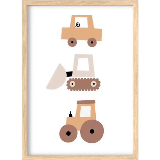 Piękne plakaty w stylu boho, w delikatnych, stonowanych barwach brązów, błękitów i beży przedstawiające auta, koparki i inne pojazdy. Urządzanie pokoju dziecka to trudne wyzwanie. Warto ocieplić klimat wnętrza dodatkami takimi jak plakaty i nie pozostawiać pustych ścian. Śliczne grafiki idealne sprawdzą się w pokoju maluszka i doskonale wpasują się w każdy wystrój.