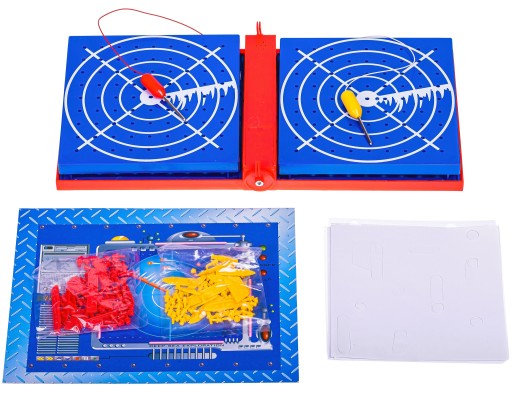 Koniec z długopisami i podkładkami! Teraz możesz grać w statki w nowy sposób. Koniec z męczącym trzymaniem łodzi, możesz po prostu przypiąć je do swojej planszy izaznaczyćna radarze trafienia wrogich statków. Gra polega na zatopieniu wszystkich okrętów przeciwnika. Forma walizeczki ułatwia transport gry.