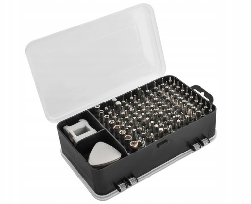 Naprawa nowoczesnych urządzeń elektronicznych wymaga nie tylko umiejętności, ale również wykorzystania odpowiedniego, precyzyjnego sprzętu. Producenci stosują różnego rodzaju zabezpieczenia, co sprawia, że do ich otwarcia wymagane są dodatkowe końcówki, które trudno znaleźć w podstawowych zestawach wkrętaków. Zestaw specjalistycznych wkrętaków to 110 elementów znajdujących się w dwustronnie zamykanym etui. Każdy element posiada swoje własne miejsce, co pozwala na zachowanie porządku oraz sprawną organizację miejsca pracy, a tym samym jej szybkie i dokładne wykonanie. Komplet przeznaczony jest zarówno do napraw telefonów, smartfonów i tabletów jak również wszystkich innych urządzeń i sprzętów, które posiadają niestandardowe, drobne śruby.