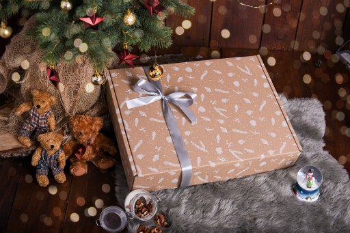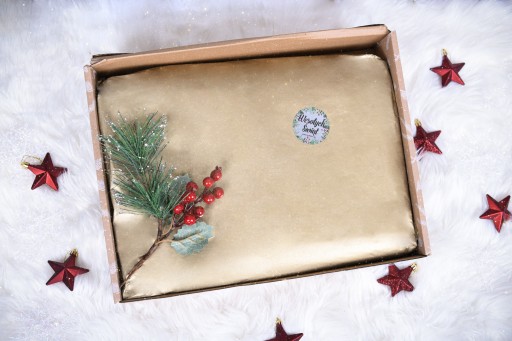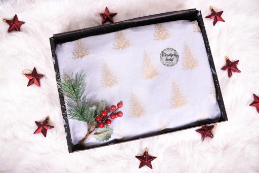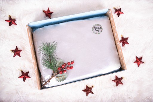 Ręczniki w kartonie dodatkowo pakowane są w bibułę z naklejką "Wesołych Świąt"- zdjęcie poniżej.