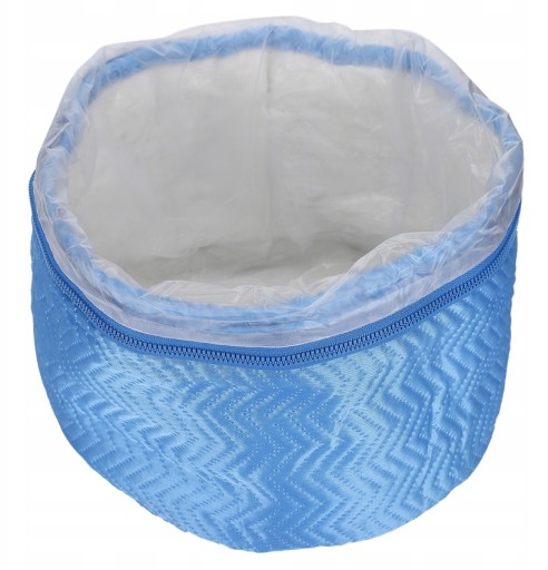 Środek czepka został dokładnie wyścielony filcową tkaniną, która z powodzeniem stale utrzyma wytworzone przez czepek ciepło. Na jej wierzchu znajduje się syntetyczna tkanina, która podczas użytkowania przylega bezpośrednio do powierzchni włosów. Po skończonym zabiegu można ją łatwo i bezpiecznie wyjąć ze środka poprzez rozpięcie zamka i w razie potrzeby wyczyścić z pozostałości użytych wcześniej kosmetyków.