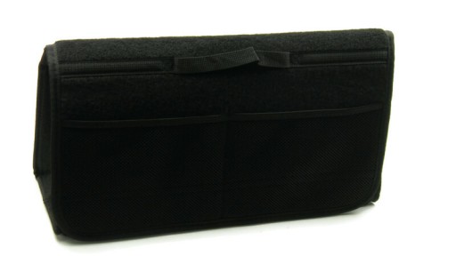 Organizer idealna opcja dla utrzymania porządku. Wykonany został z trwałego materiału, jest odporny na przetarcia i inne uszkodzenia mechaniczne. Posiada wszyte rzepy, pozwalające w łatwy sposób zamontować torbę w bagażniku. Dzięki dużym rozmiarom i pojemności możesz w niej przechowywać nawet większe przedmioty, jak trójkąt ostrzegawczy i gaśnica. Dodatkowe kieszenie boczne zwiększają pojemność organizera.