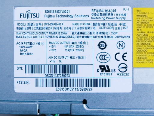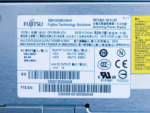 Zasilacz FUJITSU S26113-E563-V50-01 DPS-250AB-62 A