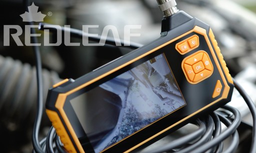 Obraz zarejestrowany kamerą inspekcyjną Redleaf RDE-1005MR można oglądać w czasie rzeczywistym, na dołączonym do zestawu monitorze LCD o przekątnej 4,3 cala. Wyprofilowane uchwyty pokryte gumą zapewniają pewny chwyt urządzenia w trakcie pracy. Moduł monitora wyposażono również w jasną latarkę oraz przyciski nawigacyjne ułatwiające kontrolę ustawień endoskopu.