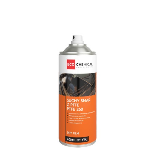 PTFE 260 Dry Film to suchy smar beztłuszczowy, pokrywający powierzchnię warstwą poślizgową. Stosowany jest jako środek antyadhezyjny, zapobiegający przywieraniu. Zapewnia mocno przylegający, odporny na pogodę, suchy film, który nie przyjmuje brudu oraz pyłu. Przeciwprzyczepny aerozol i suchym, beztłuszczowym filmie. Preparat znajduje zastosowanie przy okresowym smarowaniu przenośników, rynien zsypowych, ślizgów, zsuwni, sworzni, czopów i wypychaczy. Szczególnie przydatny przy średnich obciążeniach i niskich prędkościach przesuwu.