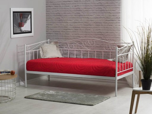 Łóżko metalowe Birma ma metalową ramę i stelaż w kolorze białym, które są trwałe i odporne na uszkodzenia. Rama łóżka ma kunsztowne, dekoracyjne zagłówki, które dodają uroku i romantyzmu. Stelaż łóżka jest mocowany na sztywno z ramą, co zapewnia stabilność i bezpieczeństwo.