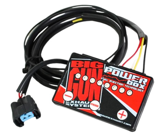 POWER BOX od firmy BIG GUN trzeciej (najnowszej) generacji, to znakomity dodatek dla każdego ATV/UTV zasilanego układem wtryskowym paliwa. Pozwala na samodzielną korektę składu mieszanki powietrze/paliwo bez konieczności programowania na laptopie, ustawiania skomplikowanych konfiguracji czy też dokonywania pomiarów na hamowni. Głównym zadaniem sterownika jest poprawa reakcji przepustnicy, momentu obrotowego, przeniesienia miejsca tzw. odcinki, co realnie przekłada się na wzrost mocy i osiągów. POWER BOX działa na zasadzie "plug and play", czyli jest stosunkowo prosty w montażu do fabrycznej instalacji elektrycznej, natomiast korekty dawki paliwa dokonuje się za pomocą zintegrowanych przycisków "+" oraz "-", gdzie o poziomie aktualnej dawki paliwa informują nas podświetlane diody LED (8-mio stopniowa regulacja). Zdjęcia przedstawiają rzeczywisty wygląd towaru. Dzięki sprawdzonej, wysokiej jakości zapewnia długą i bezproblemową eksploatacje.