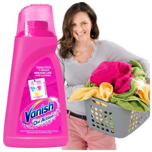 Vanish odplamiacz zawiera aktywny tlen, który usuwa wszystkie rodzaje plam. Płyn jest delikatny dla tkanin, ale skuteczny w walce z zabrudzeniami. Zalety produktu: