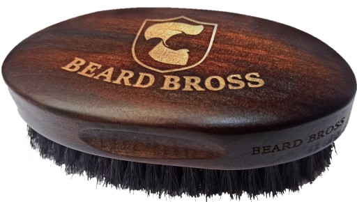 Ręcznie wykonana szczotka BEARD BROSS z rękojeścią z drewna akacjowego i włosiem z dzika o optymalnych rozmiarach 120/55/35mm idealnie leży w dłoni.