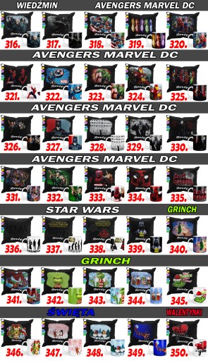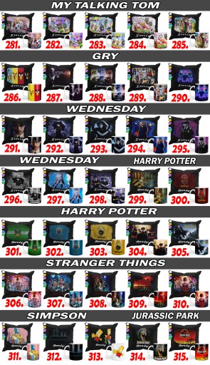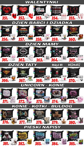 Oferujemy urozmaicone wzory dla każdego w różnym wieku zarówno nadruki dziecięce jak i okolicznościowe. Duża gama nadruków bajkowych, sportowych, motoryzacyjnych, zwierzęcych itp.