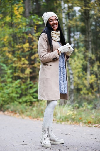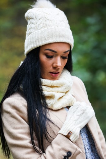 Czapka, komin i rękawiczki wykonane zostały z najwyższej jakości materiałów z dbałością o szczegóły.