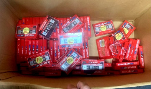 Maxell UR 90 1985r. - 1 szt . uszkodzona folia lub / i opakowanie - na części kaset nalepki lub i taśma samoprzylepna