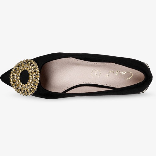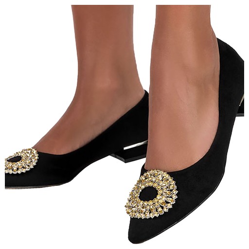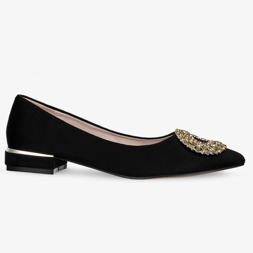 Czarne baleriny damskie z ozdobą model D23X7-B zostały wykonane z wysokogatunkowego zamszu ekologicznego, co gwarantuje doskonałą jakość, wygodę i dopasowanie do stopy. Skórzana wkładka w butach to dodatek, który ma kluczowe znaczenie dla komfortu i higieny stóp. To eleganckie i stylowe obuwie, które łączy w sobie klasyczny design z subtelnością detalu. Głównym elementem tych balerinek jest złota ozdoba, umieszczona z przodu buta, która doda szyku i uroku każdej kobiecej stylizacji. Mają płaską, wygodną podeszwę z ozdobnym elementem. Buty te świetnie komponują się z różnymi stylizacjami. Można je nosić zarówno na co dzień, do pracy, jak i na specjalne okazje, takie jak wesela czy bankiety. Czarne baleriny stanowią uniwersalny element garderoby, który doskonale pasuje do wielu kolorów i wzorów a ozdoba dodaje im subtelnego blasku i luksusowego akcentu. Te wyjatkowe baleriny dostepne na Casu łączą w sobie klasyczną prostotę z wyrafinowanym akcentem.