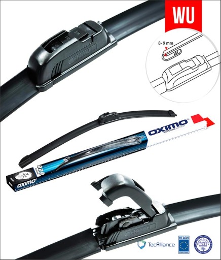 Wycieraczki typu-U bezszkieletowe o długościach 300 – 700 mm. Mocowanie typu-U 9 mm oraz typu-U 8 mm w jednym. Wycieraczki tego typu charakteryzują się mocowaniami na tzw. „haczyk” w kształcie litery „U”.