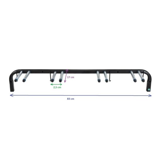 - OCHRONA: Dzięki gumowej powłoce narty są doskonale chronione przed zarysowaniami, a właściwa konstrukcja listwy z haczykami zapewnia, że narty wiszą w odpowiedniej odległości od ściany i od siebie nawzajem.