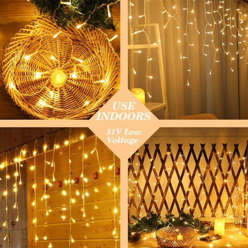 - Idealna dekoracja wakacyjna: ciepłe białe lampki lampki są najlepszym wyborem do dekoracji świątecznej i dają festiwalową atmosferę ślubu, przyjęć, walentynek, Bożego Narodzenia, Święta Dziękczynienia i Nowy Rok . Wodoodporne (IP44) lampy wróżki sopelki są odpowiednie do sypialni, żywopłotów, ogrodzeń, balu, patio, okapu, ręcznego dekoracji zewnętrznej.