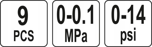 9-częściowy zestaw marki YATO przeznaczony do pomiaru ciśnienia w układach podciśnieniowych, gaźnikowych, kolektorach ssących, Servo.