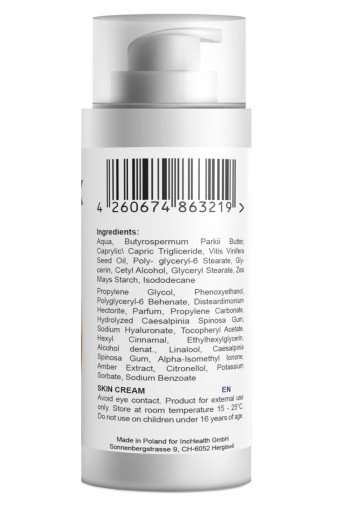 Instrukcja obsługi: Nadaj taką ilość kremu na wybrane części ciała, jaka jest potrzebna do wygodnego stosowania i powtarzania tak często, jak chcesz.