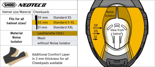 Poduszki policzkowe Shoei Type L Cheek Pad Neotec 2 Type-L [Rozmiar: 35 mm]