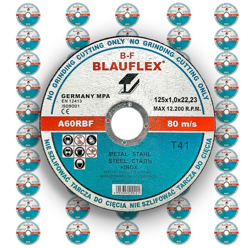 - Tarcza BLAUFLEX przeznaczona do stali czarnej i metali nieżelaznych, stali nierdzewnej INOX (stal konstrukcyjna, profile, blachy, rury), ale możliwe jest zastosowanie do innych rodzajów stali.