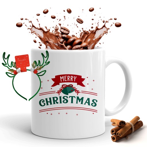 ⭐ KUBEK świąteczny na prezent z TWOIM ZDJĘCIEM + OPASKA RENIFERA ❗