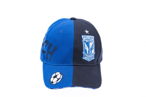 Dwukolorowa czapka baseballowa dla dzieci z haftowanym napisem LECH oraz herbem Kolejorza. Czapka posiada wywietrzniki i regulację obwodu.