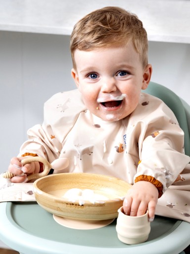 - Innowacyjny śliniak i fartuszek 2w1 BiBADO to niezbędna pomoc dla wszystkich rodziców uczących dzieci samodzielnego jedzenia metodą BLW.