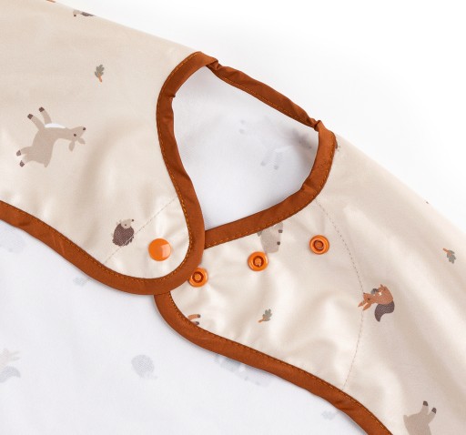- Ochrona podczas zabawy, Śliniak może być używany podczas czynności, takich jak zabawa z farbami, kredkami czy modeliną. Dzięki wodoodpornemu i plamoodpornemu materiałowi, chroni ubrania dziecka przed zabrudzeniami, zapewniając swobodę w twórczych aktywnościach