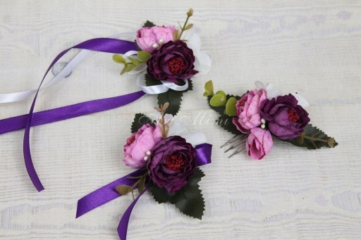Стильный наручный котильон камелия ПУРПУР, свадебный выпускной