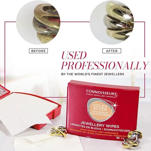 Suche chusteczki Connoisseurs do czyszczenia biżuterii Jewellery Wipes to szybki i prosty sposób na przywrócenie blasku biżuterii noszonej na co dzień. Sprawdzają się przy czyszczeniu biżuterii ze złota, srebra oraz innych metali szlachetnych. Dzięki poręcznemu opakowaniu możesz mieć je zawsze przy sobie – w domu, pracy, torebce czy w podróży.