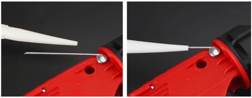 ✅ Chowaną IGŁĘ do przebijania, usuwania zaschniętej zawartości silikonu, kleju itp. z lejka, otworu tuby.