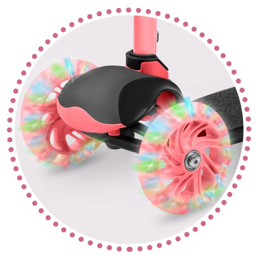 - świetna zabawa! Hulajnoga posiada wbudowane dynamo - dzięki czemu kółka świecą się podczas jazdy!