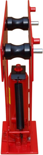 Giętarka hydrauliczna z napędem ręcznym. pompowanie przy pomocy załączonej dźwigni. Odpuszczanie ( cofnięcie tłoka ) następuje po odkręceniu zaworu w części dolnej siłownika.