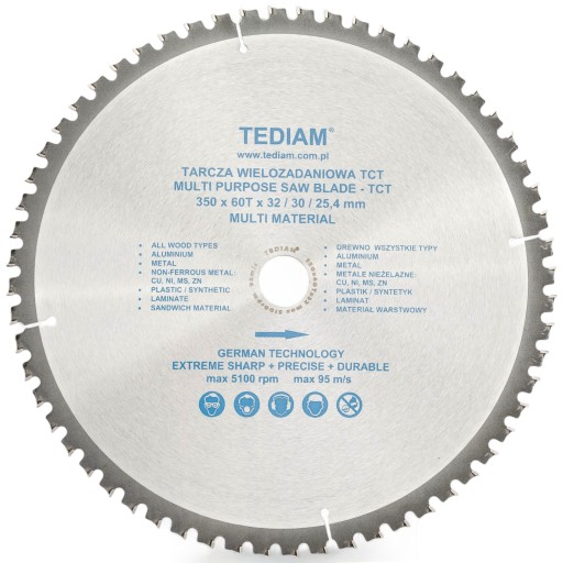 TARCZA TNĄCA PIŁA WIELOZADANIOWA TCT TEDIAM 350x32x60T DO DREWNA METALU