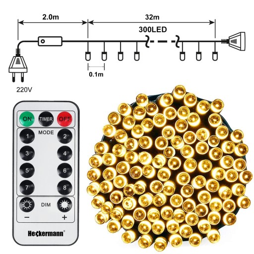 - 1x łańcuch świetlny 300 LED