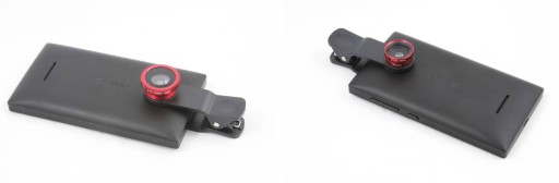 W zestawie z obiektywami dołączono specjalny, sprężynowy klips montażowy, pozwalający na montaż każdego z obiektywów niemal przy każdym telefonie / smartfonie / tablecie.