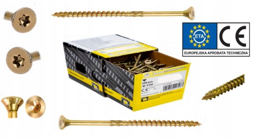 Wkręty przeznaczone są do połączeń elementów drewnianych i drewnopochodnych (płyta wiórowa, sklejka, drewno, płyta OSB, płyta MDF). Innowacyjna konstrukcja sprawia że praca z nimi to czysta przyjemność.Wkręt konstrukcyjny został wykonany ze stali niskowęglowej. Element jest odporny na czynniki takie jak ścinanie i wyrywanie. Nie wymają wcześniejszego nawiercania. Nacięcie na początku gwintu znacznie ułatwia wstępny montaż. Dzięki temu drewno nie pęka. Takie rozwiązanie pozwala na wykonanie mocowań w miejscach, gdzie nie ma możliwości dokładnego dociśnięcia elementu. Głębokie i stabilne gniazdo TORX efektywnie przenosi moment obrotowy bez efektu wyskakującego bitu. Umieszczony w połowie wkrętu frez poszerza otwór, dzięki czemu mocowanie wymaga użycia aż 20% mniejszej siły.