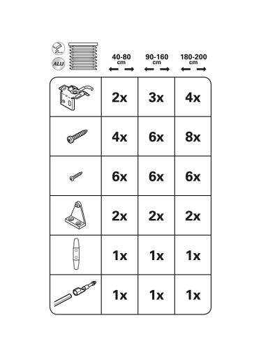 - skład materiału: 25 mm aluminiowe lamele, stalowa szyna górna 25 x 25 mm, taśmy do żaluzji dopasowane kolorystycznie, obsługa sznurkiem i drążek obsługi z prawej strony, w zestawie materiał mocujący do montażu na suficie lub ścianie Wskazówka: montaż bez wiercenia i wkręcania z uchwytami zaciskowymi do skrzydła okiennego art. Nr 7034