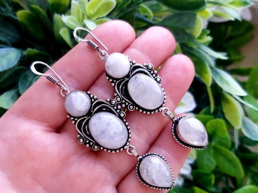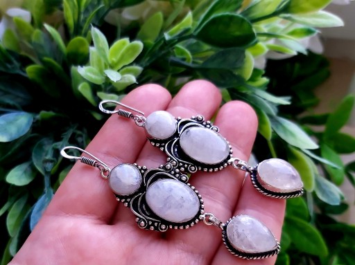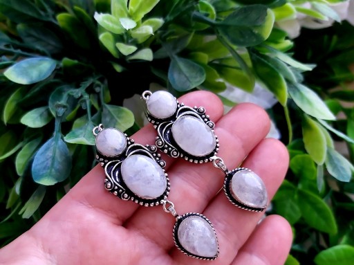 Zrobiono z indyjskiego srebra(ze stopu srebra i miedzi).Centrum oprawiony naturalny Kamień Księżycowy. Ręczne wykonanie indyjskiego jubilera. Nowy bez metki.