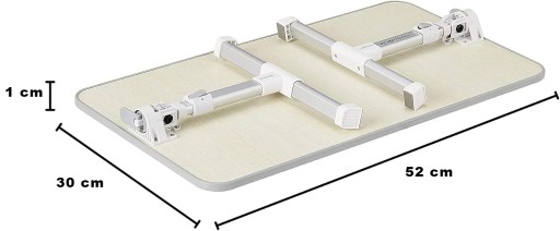 Wymiary stolika (52.07 x 29.97 x 1.02 cm) są optymalne dla laptopów o przekątnej ekranu do 14 cali. Kompaktowe wymiary sprawiają, że po złożeniu stolik nie zajmuje wiele miejsca i może być łatwo schowany, np. pod łóżko.
