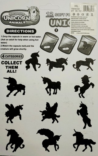Magiczne kapsułki to podłużne tabletki, które, po zanurzeniu w wodzie, wykluwają się w różnorodne jednorożce w postaci mięciutkich gąbeczek.