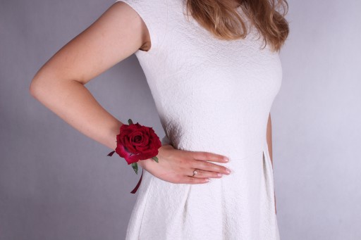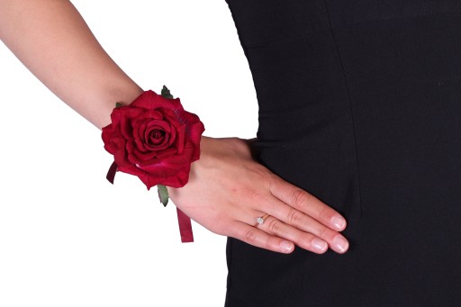 Wstążka kotylionu na rękę ma długość ok 50 cm.