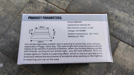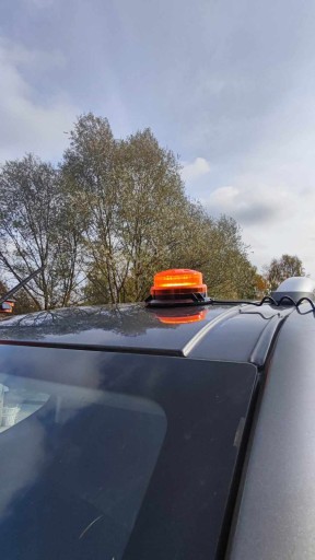 Lampa błyskowa ostrzegawcza kogut LED na magnes 12-24V 12 trybów świecenia.