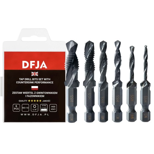 ➡️ Lepsze efekty i precyzja: Bez względu na to, czy pracujesz w profesjonalnym warsztacie, czy nad własnym projektem w domu, wiertło z gwintownikiem i fazownikiem DFJA pozwoli Ci uzyskać najlepsze rezultaty eliminując błędy związane ze zmianą wiertła.