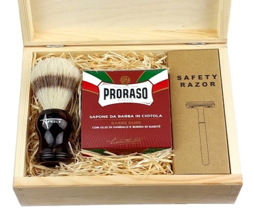 Zestaw do golenia w ekologicznym, drewnianym pudełku z